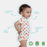 Wrap their tiny stretches, first steps, and quiet snoozes in 100% organic cotton baby suits. With soft fabric, easy snap bottoms, and a choice of subtle colours and playful prints, these unisex onesies keep your little one comfortable through wriggles, naps, and everything in between.