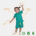 Made for the tiniest explorers, our Organic Baby Co-ord Set combines the best of comfort and cuteness. This two-piece set includes a short-sleeve tee with easy snap buttons and matching play shorts with a soft elastic waistband and contrast drawstrings. Crafted from 100% organic cotton, it’s buttery soft, breathable, and gentle on delicate baby skin. Whether it’s tummy time, crawl time, or cuddle time—this co-ord set is your go-to for fuss-free dressing and all-day comfort.
