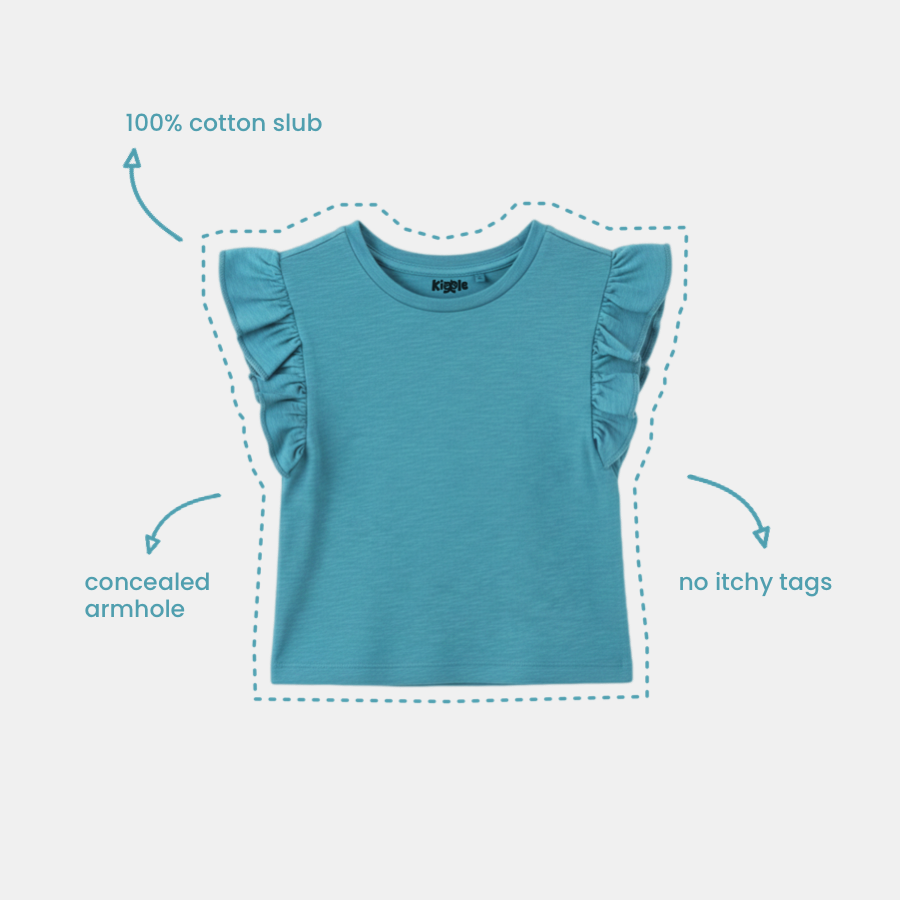 This is “not your basic tee”. It comes with Frill Sleeves and a whole lot of comfort that feels like a hug every time it's worn. Crafted from 100% organic slub cotton, this wiggly, regular-fit tee is soft, charming, and just the right amount of quirky.